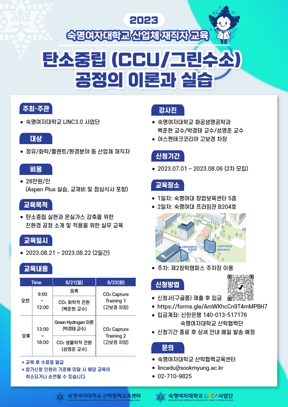 ❍ 문의: 숙명여자대학교 산학협력교육센터 (02-710-9825, lincedu@sookmyung.ac.kr)